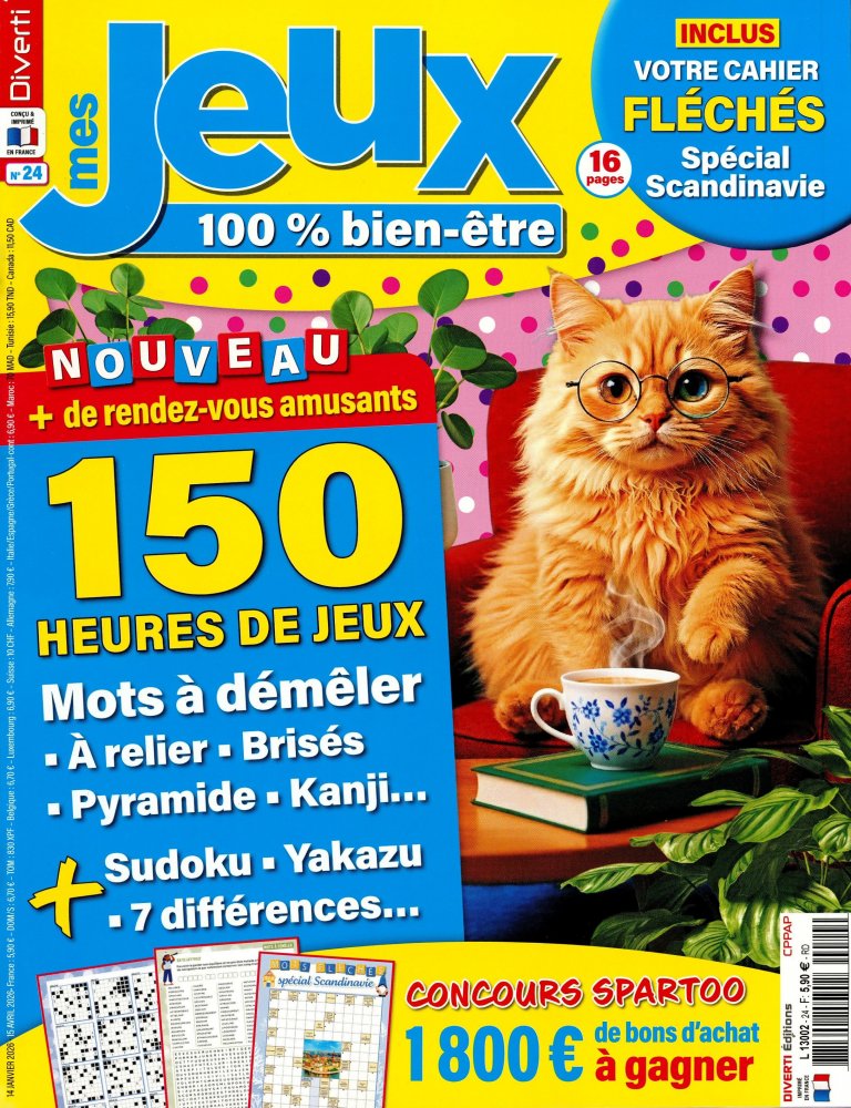 Mots mélangés, mots fléchés, mots croisés, multi-jeux, objets cachés, sudoku, les 7 différences, trouver l'inconnue… pour des heures de jeux et de tests à réaliser, avec un vrai sentiment de lâcher-prise et de détente ! Ce magazine est conçu, fabriqué et imprimé en France.